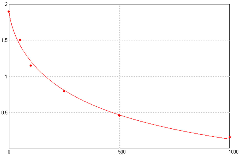 This Monkey CC16 ELISA Kit is intended for laboratory research use only and not for use in diagnostic or therapeutic procedures. The stop solution changes color from blue to yellow and the intensity of the color is measured at 450 nm using a spectrophotometer. In order to measure the concentration of Monkey CC16 in the sample, this Monkey CC16 ELISA Kit includes a set of calibration standards. The calibration standards are assayed at the same time as the samples and allow the operator to produce a standard curve of optical density versus Monkey CC16 concentration. The concentration of the samples is then determined by comparing the O.D. of the samples to the standard curve.